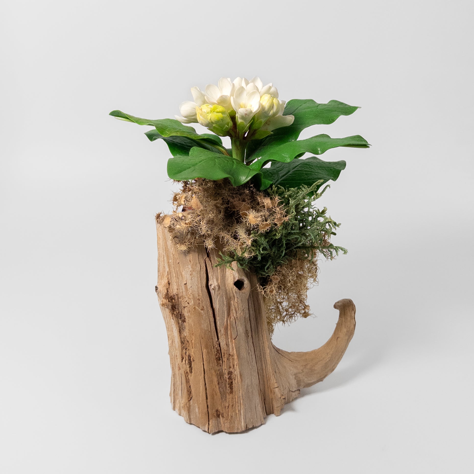 Small White Mayflower Bouquet on Driftwood by Chandler Conrad