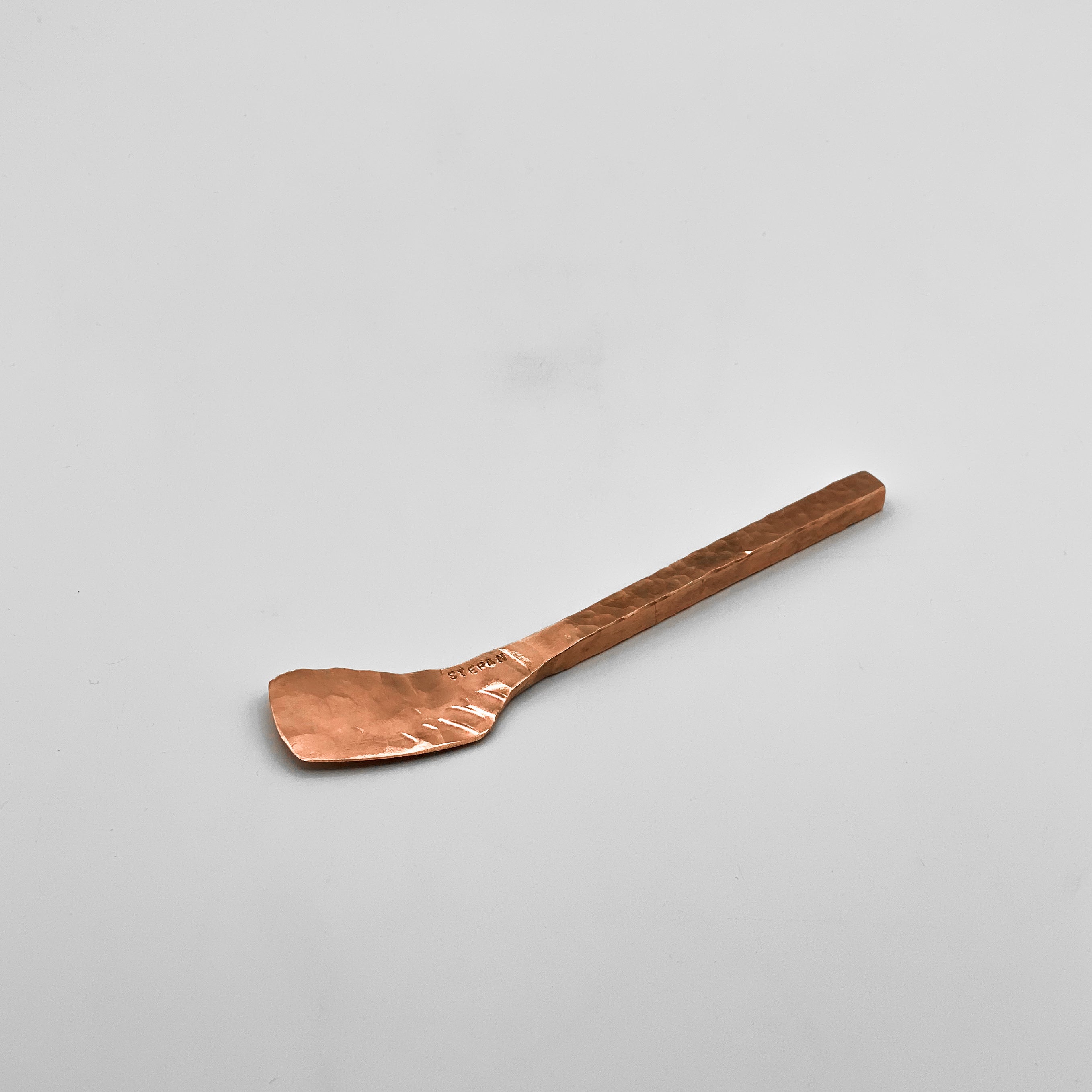 The tools are for serving charcuterie, hors d’oeuvres, cheeses, etc.. They are not intended for mouthing food. As seen above, vinegars and acids affect copper, and they are present in some foods, so limit their exposure to the copper tools (for instance, tomato sauces, deeply pickled items, etc.). Enjoy the hammered and work hardened edges cutting cheeses, and maintain on a stone if needed. As the tools are sharpened, please exercise appropriate care with use. The specific uses for different instruments can be found on our website.