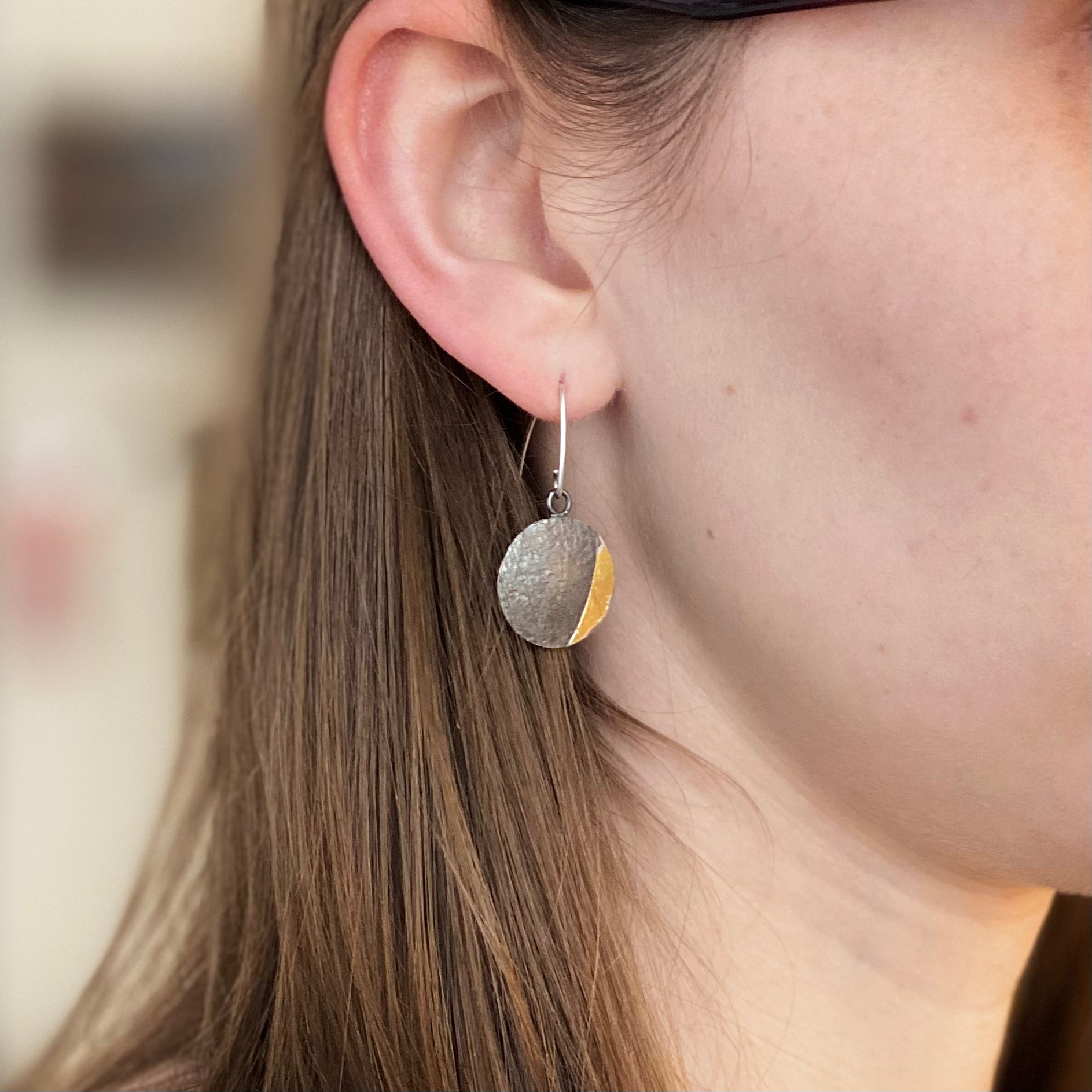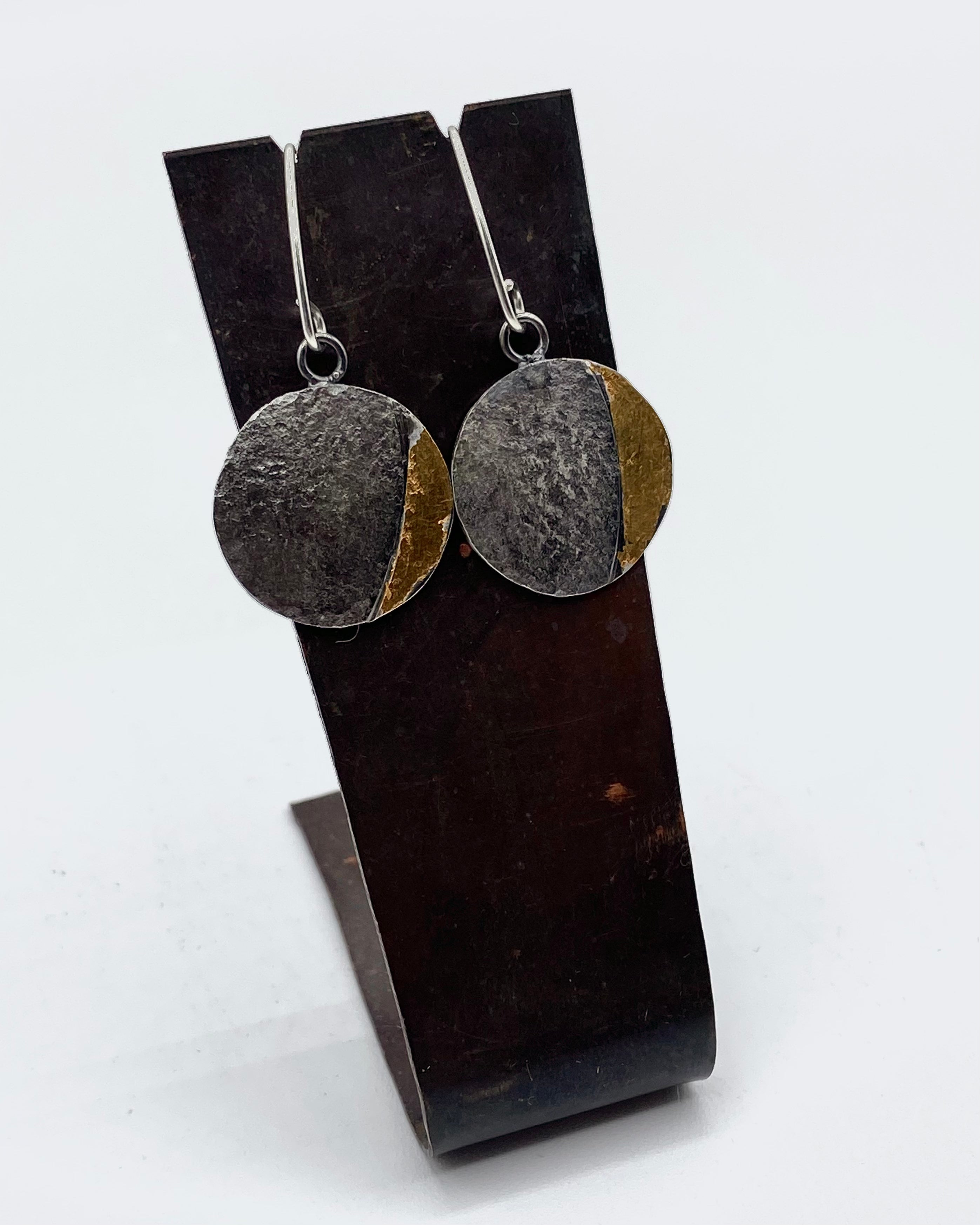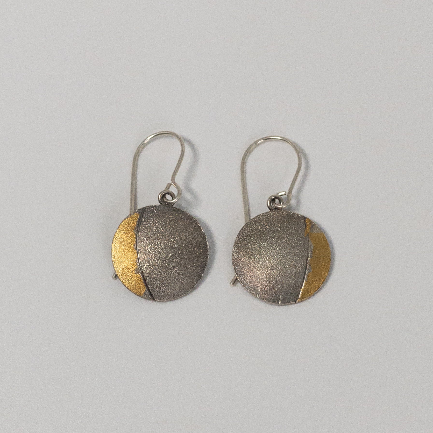 Quarter Moon Earrings w/ Gold by Five Crows Silver
