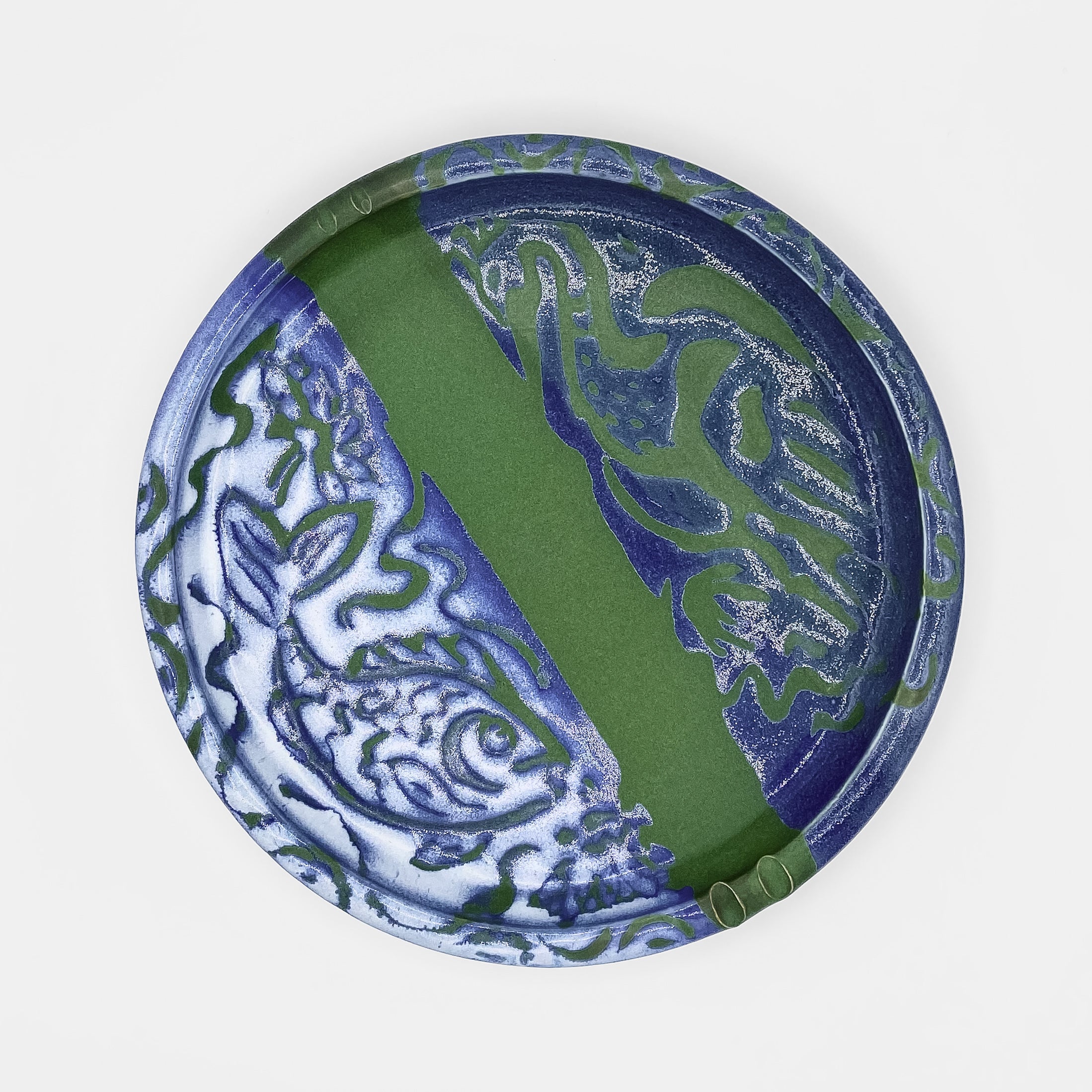 Stoneware hand-drawn plate by Peter Thomas. Diameter 9.5"