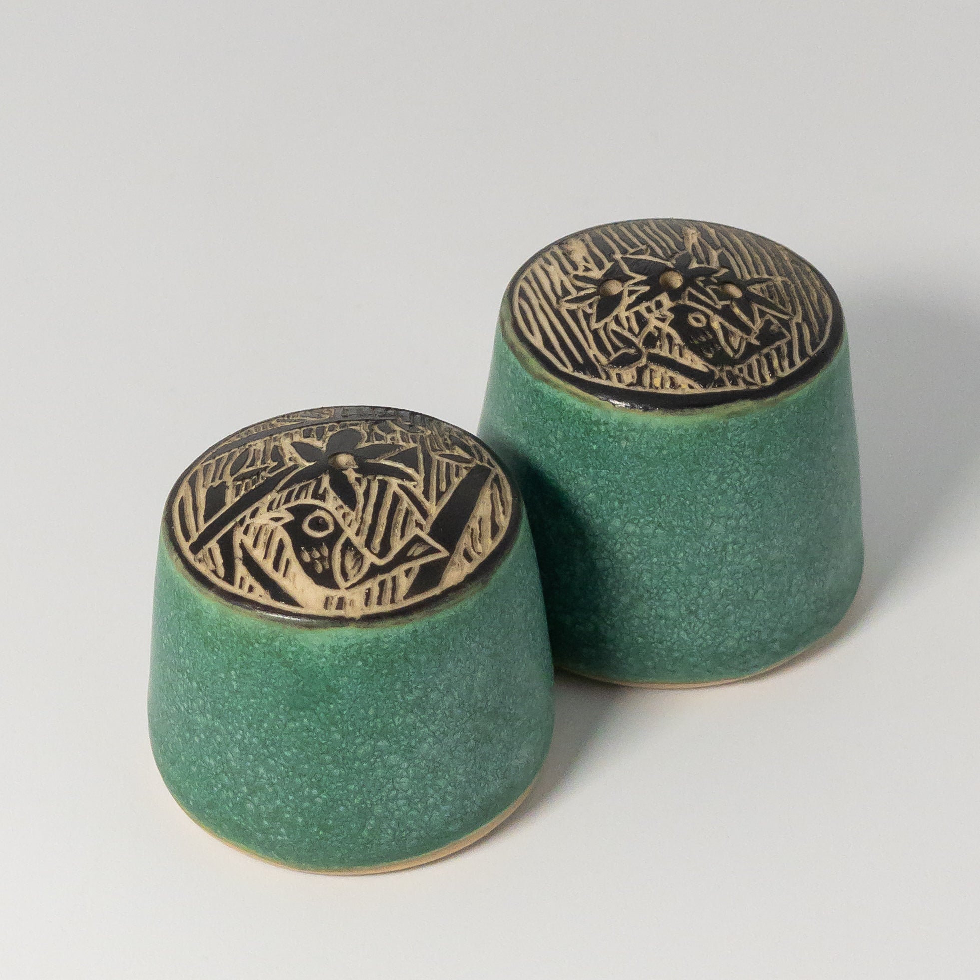 Salt & Pepper Shakers w/ Aesops Fables by Maru Pottery