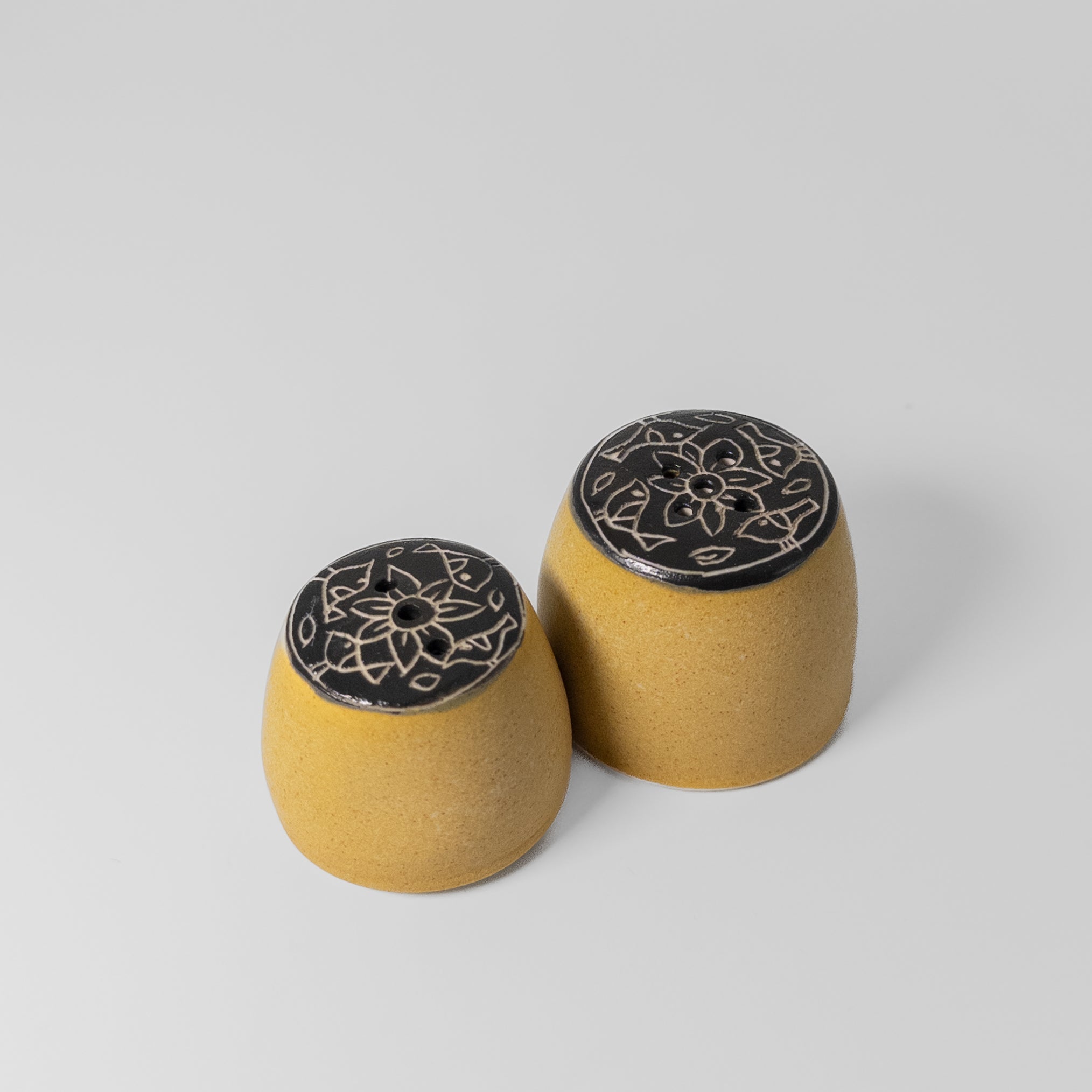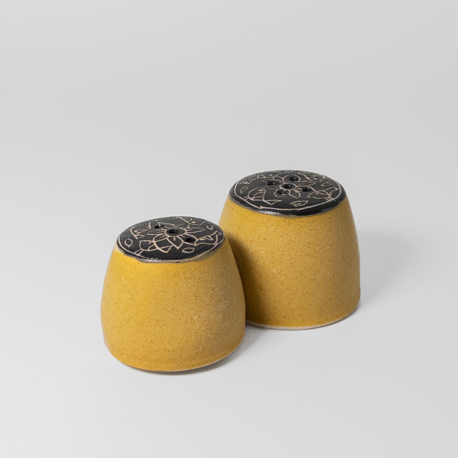 Salt & Pepper Shaker Set w/ Flowers in Yellow by Maru Pottery