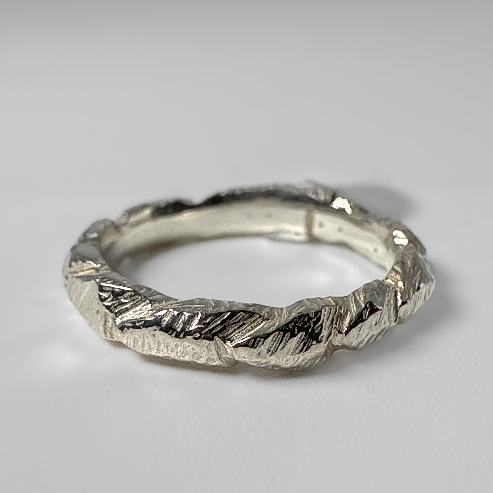One ring to ground you, and two others with seven earthly mounds, reaching skyward. These rings are the for seekers, the thinkers, and the searchers of truth. Commotion #3 is the thinker. Wear it alone or as part of a striking trio. Handmade by Melissa Morrison in Petite Rivière, Nova Scotia, Canada.