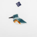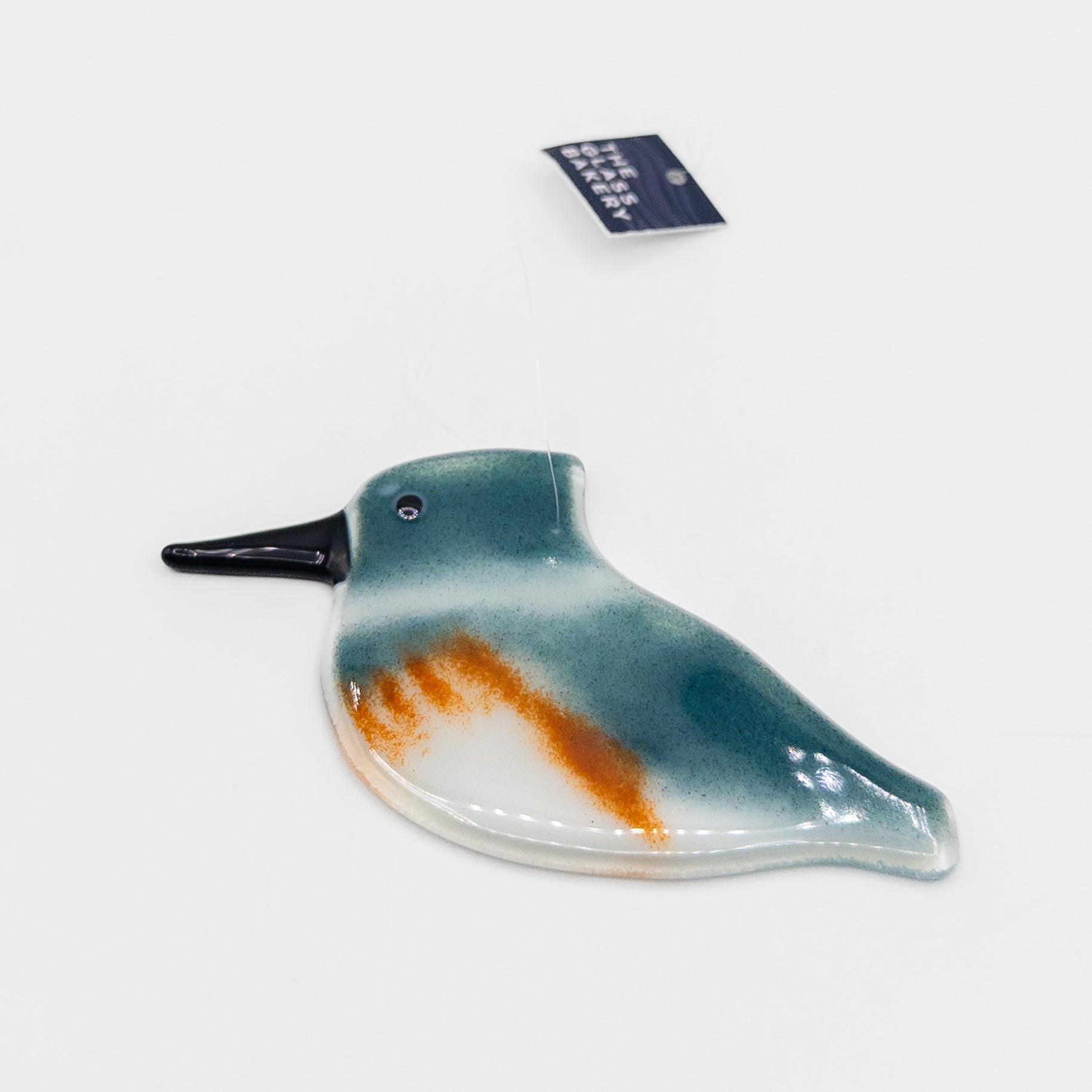 Your Kingfisher is crafted entirely from glass - no paints, glazes or moulds. The shape was designed and hand-cut with layers of coloured crushed glass built up on the clear shape before firing in a kiln over many hours. The bird comes with his own detachable driftwood perch that has been sanded on the underside for stability. Simply slot the birds legs into the holes in the top side of the wood.