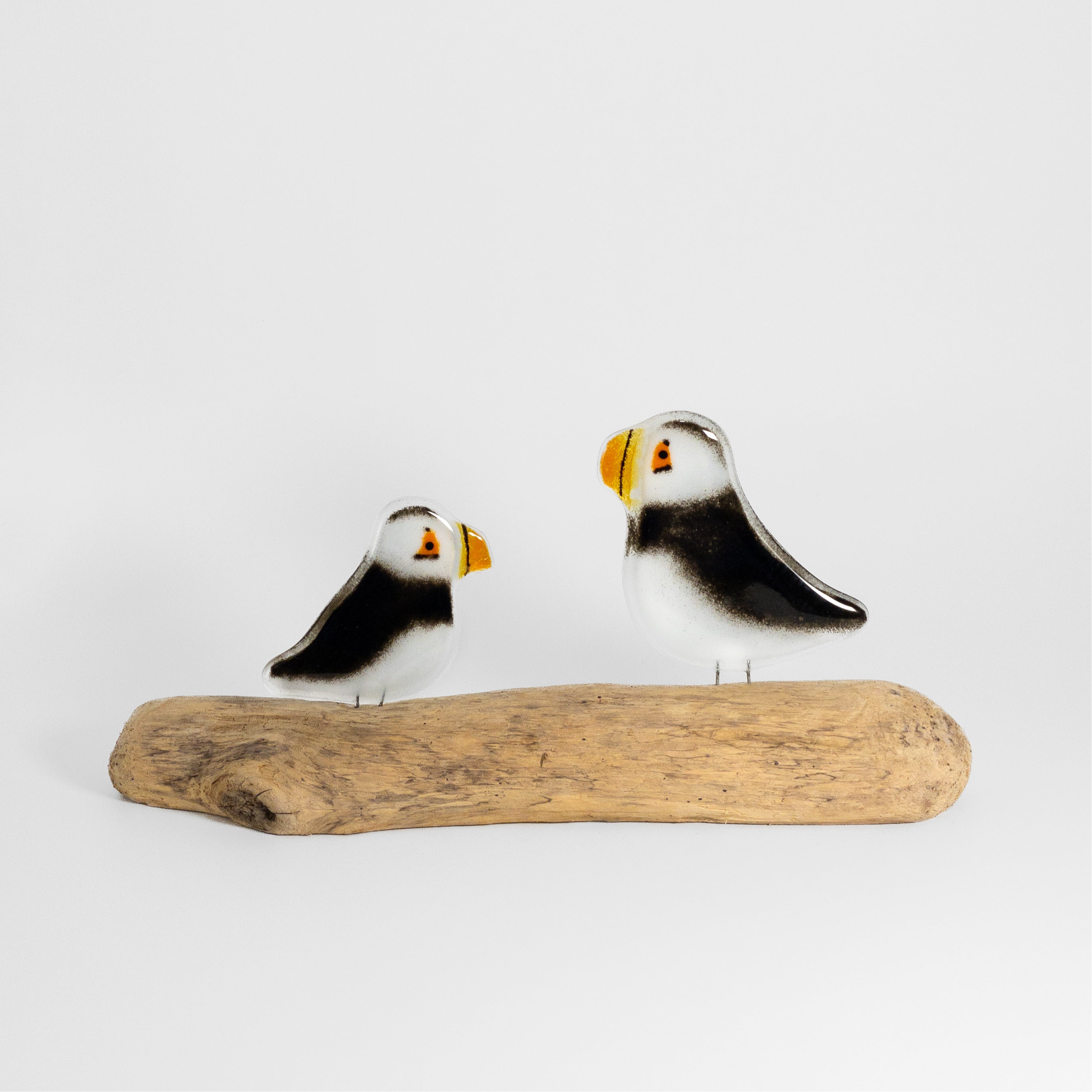 Puffin Chick & Adult on Perch by The Glass Bakery